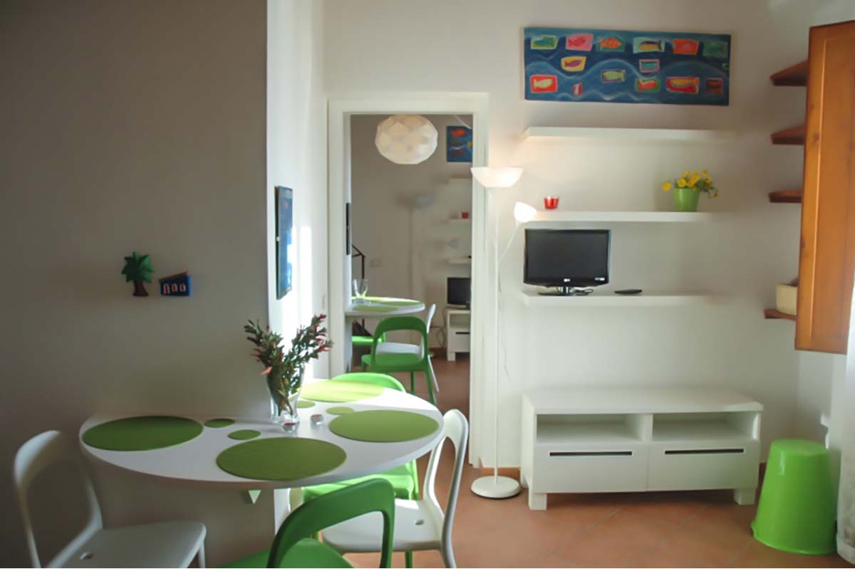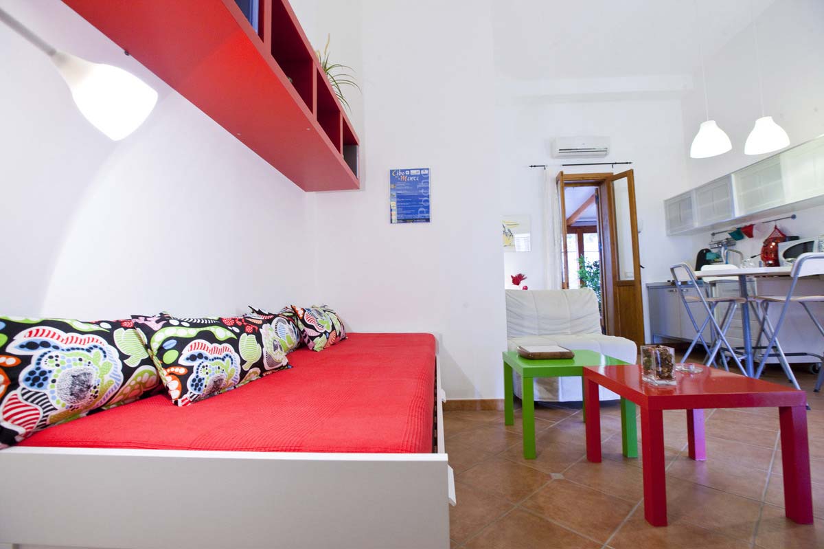 - Soggiorno abitabile con divano letto, cucina (2 piastre elettriche), lavello, frigorifero, forno a microonde, macchina per caffè, thè e cappuccino, stoviglie, televisione, asse e ferro da stiro, aria condizionata, riscaldamento, Kit cortesia.