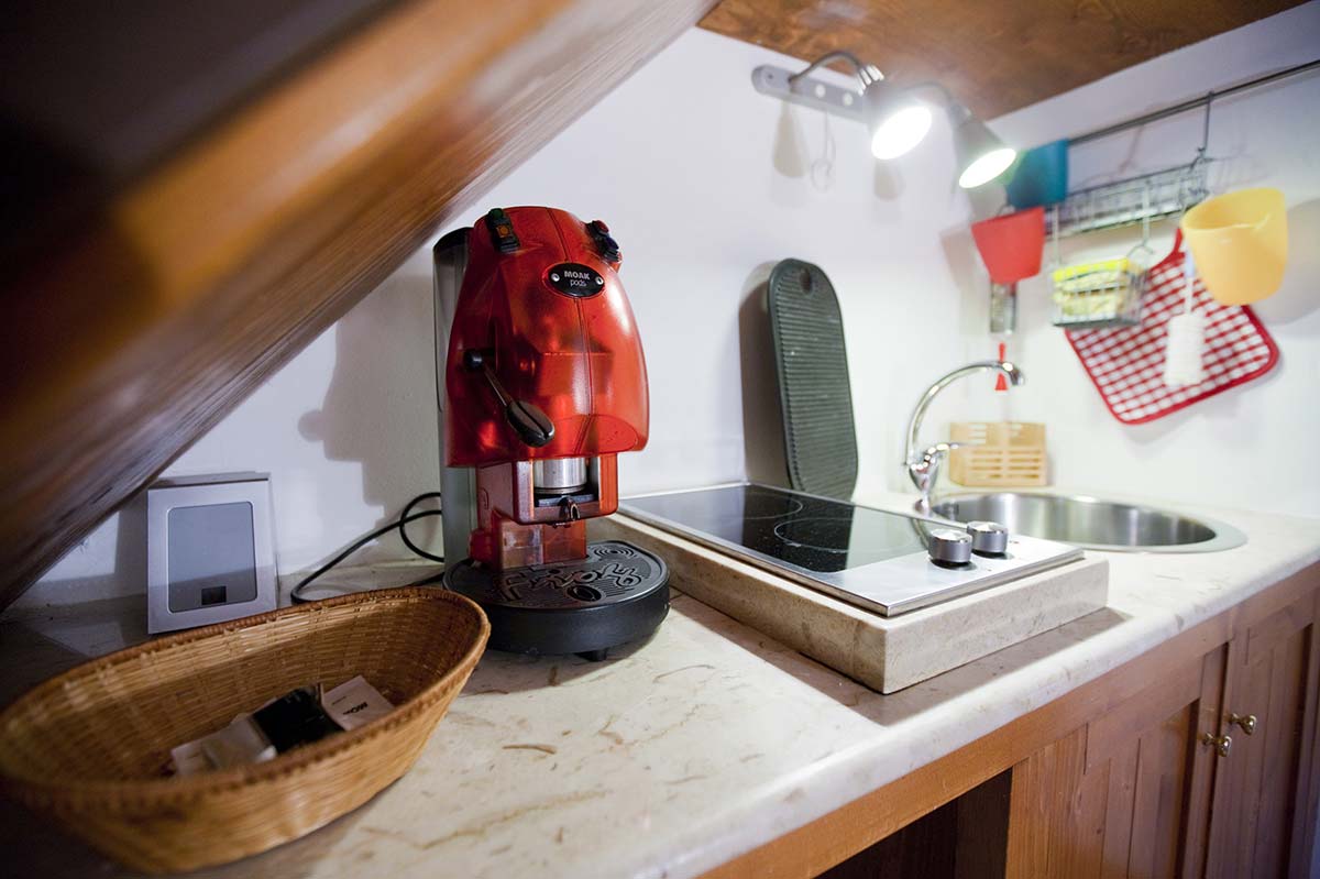 - N.2 soggiorni, con mini n.2 mini cucina (6 piastre elettriche), n. 2 forno a microonde, n. 2 lavelli cucina, n.2 piccoli frigoriferi, n.2 macchine per caffè, thè e cappuccino, stoviglie, n.2 televisori, n.2 assi e ferro da stiro, aria condizionata, riscaldamento, Kit cortesia.