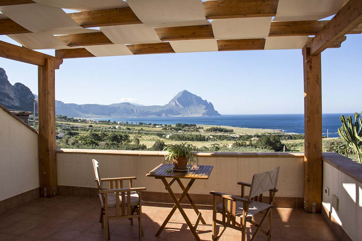 - Ampia terrazza abitabile con vista sul golfo del Monte Cofano al piano superiore.
